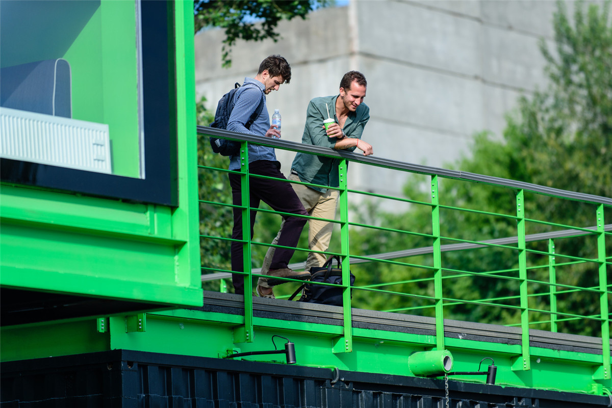我們希望能夠嘗試使用海運集裝箱,在草圖之后,我們得到批準準備詳細文件??Х葟d成了一個特殊的名片和亮點。居民、學生和其他人在Unit City(振興區(qū)域的名字)上吃飯,開會,討論業(yè)務,或結(jié)交朋友。