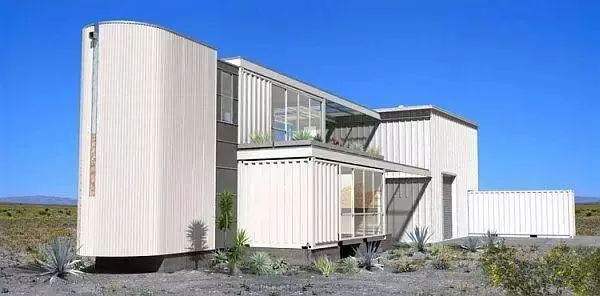 莫哈韋沙漠上的這個(gè)集裝箱建筑占地214平方米(2300平方英尺),將高效節(jié)能和大量生產(chǎn)的模塊結(jié)構(gòu)結(jié)合起來(lái),構(gòu)建一個(gè)低成本、可持續(xù)性的房屋結(jié)構(gòu)。